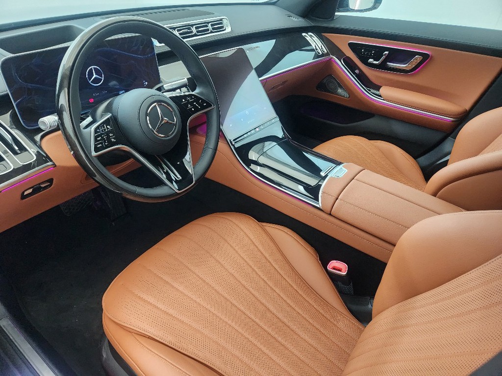 * תא נוסעים מפואר עם ריפודי עור, גימורי עץ ותאורת אווירה מתקדמת